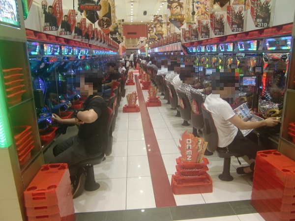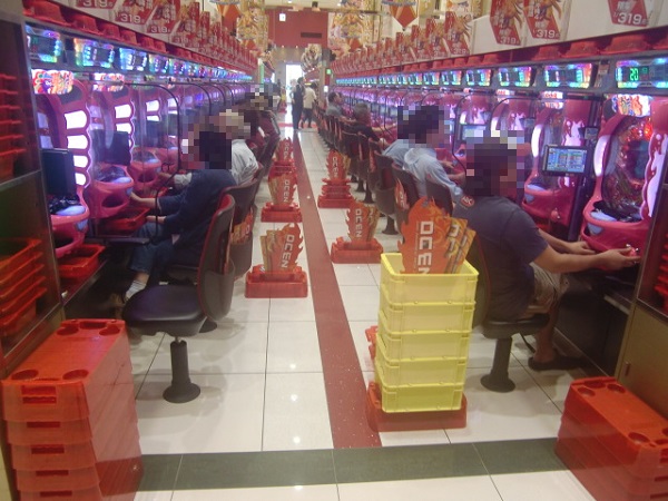 午後の4円パチンココーナーでは、「CRスーパー海物語IN沖縄4」が盛況。和やかなムードが漂う中、満面の笑みを浮かべて遊技をするプレイヤーが見られ、シマ内から活気が感じられた。