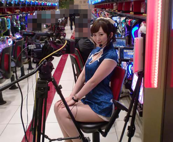 プレイヤーたちに混じり、「SLOT魔法少女まどか☆マギカA」で遊技を楽しんでいた。