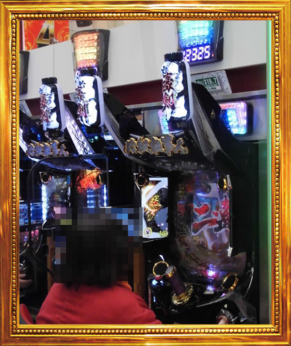 さまざまな機種が楽しまれている4円パチンコにおいて、ひときわ目立っていた機種が「CR真・花の慶次2」。プレイヤーが披露した見事なパフォーマンスをみても、遊技を満喫していることがうかがえた。