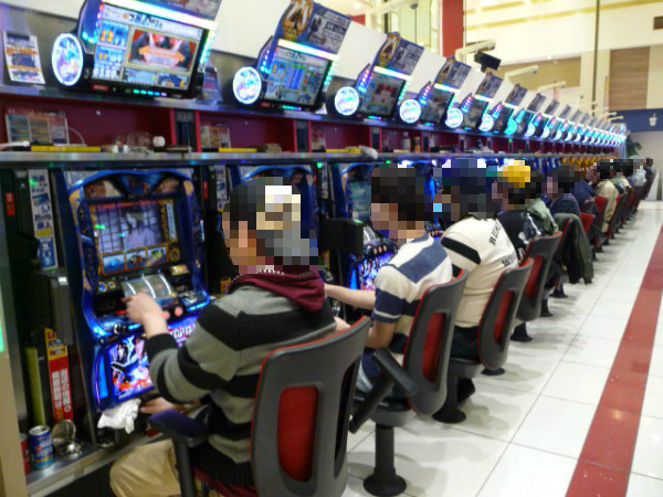 20円パチスロコーナーも、朝からフル稼働の状況。なかでも「バジリスク~甲賀忍法帖~絆」は、これから勢いが伸びそうな気配が感じられた。