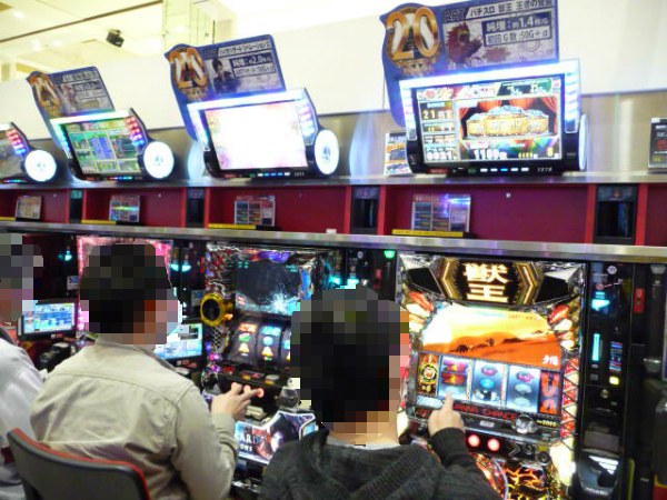 20円パチスロコーナーをチェックすると、「バジリスク~甲賀忍法帖~絆」や「パチスロ獣王 王者の覚醒」で、華麗なパフォーマンスを披露するプレイヤーの姿を確認。理想的な展開にシマ内は明るい雰囲気に包まれていた。