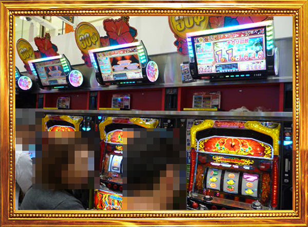 沖スロや「ミリオンゴッド-神々の凱旋-」なども好評。にぎわいが大きく、うれしそうにレバーを叩いている姿も確認している。