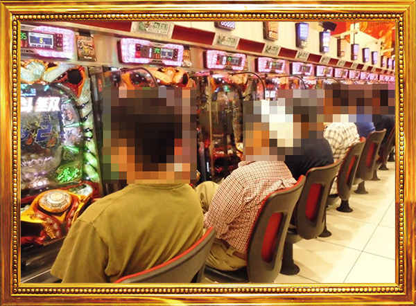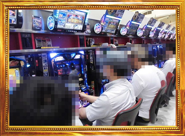 12時をまわる頃の20円パチスロをみてみると、多数のプレイヤーが笑顔で遊技をおこなっていた。