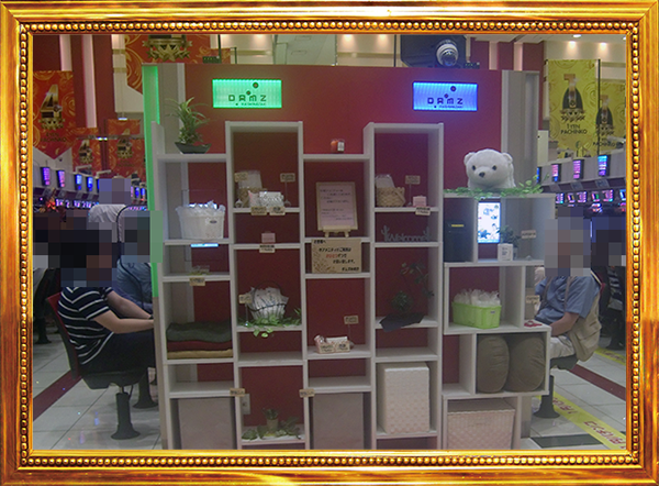シマの近くに、おしぼりやマスクなどのアメニティグッズが用意されていることも好感を持ったポイント。充実したサービス面も、「DAMZ柏崎店」に多くのプレイヤーが訪れている理由なのだろう。