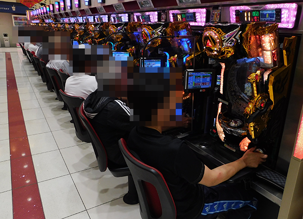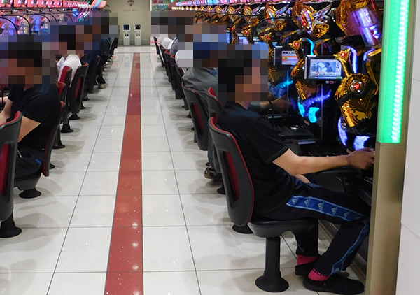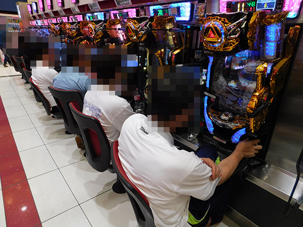 滞在中には「P牙狼冴島鋼牙」の近くを何度も通ったが、設置されている15台はつねにフル稼働であった。
