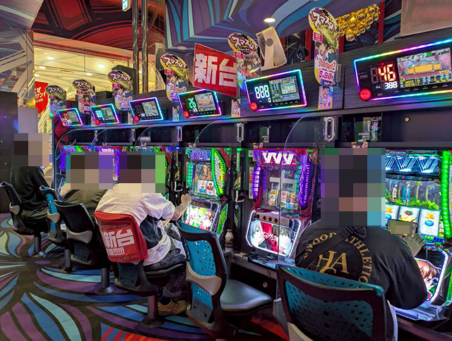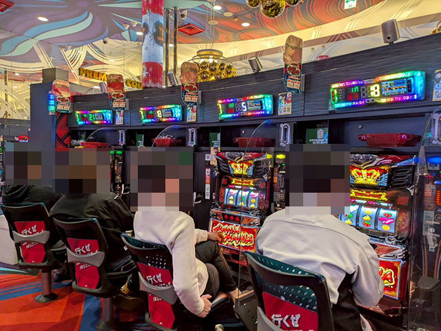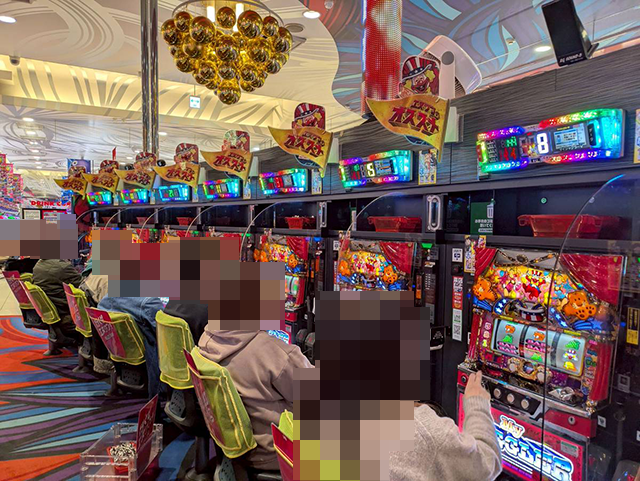 「キングハナハナ-30」や「マイジャグラーⅤ」など、あちこちでプレイヤーの笑顔がみられ、充実した時間を過ごしていることがうかがえた。