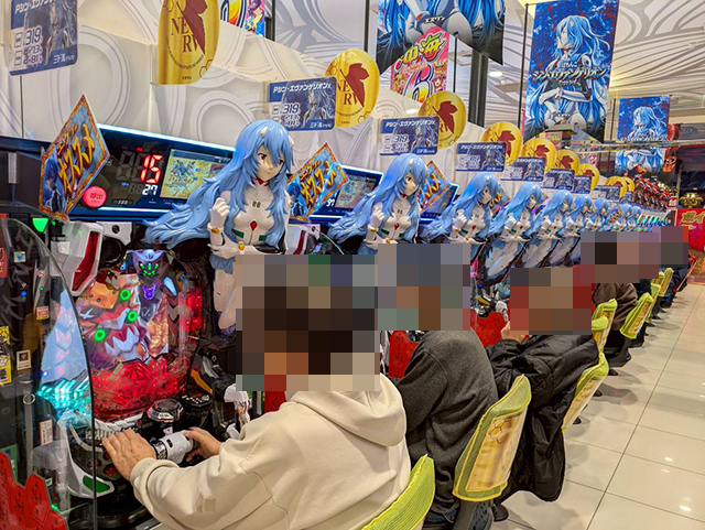「ぱちんこ シン・エヴァンゲリオン Type レイ」と「新世紀エヴァンゲリオン~未来への咆哮~」も稼働率が高く、にぎわいも大きい。