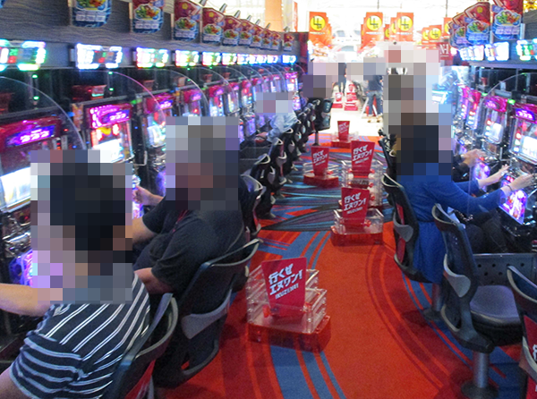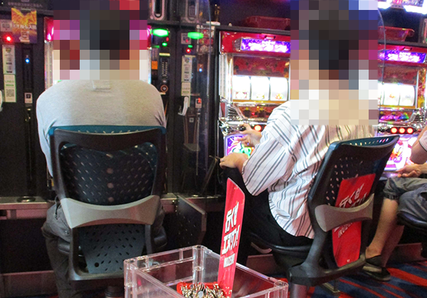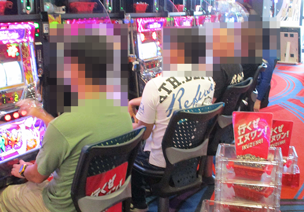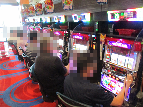 談笑しながら遊技をおこなう姿やイキイキとレバーを叩く様子など、さまざまなプレイヤーを確認。ひとつひとつのシーンに対してうらやましさを覚え、空き台を確保して一緒に機種の魅力を堪能したいと感じた。