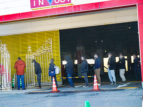 開店前から50人以上のプレイヤーが列を形成。各人とも遊技開始を待ちきれない様子だった。
