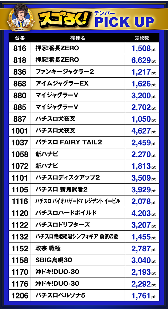 ほかにも、1120番台の「パチスロハードボイルド」や1158番台の「SBIG島唄30」などなど、多くの台に注目!