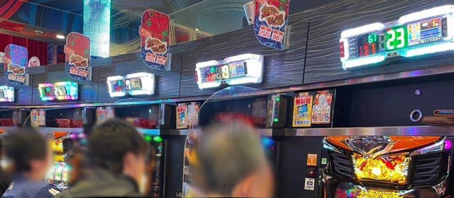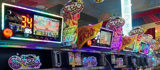 同店では5台を超える設置の機種はないが、その中でも台数が多めとなる『スマスロ北斗の拳』『スマスロバジリスク~甲賀忍法帖~絆2 天膳 BLACK EDITION』といったところが稼働は高くかつ台上には誇らしい数字が光った。またバラエティー的な少設置の台でもボーナス表示が多い台が確認された。