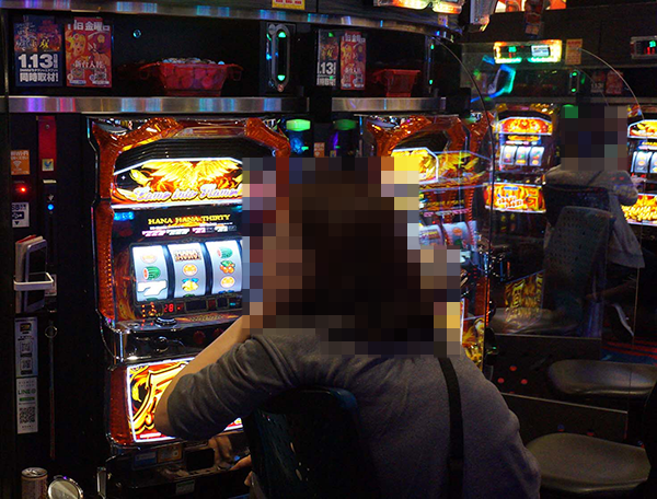 遊技をするプレイヤーに目を向けると、円形のシマに設置されている「ハナハナ鳳凰-30」にて、華麗な活躍を披露する姿を目撃。