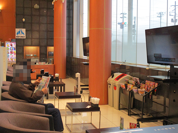 また、無料で飲めるお茶が用意されていることやテレビがみれるレストスペースがあることも魅力的なポイント! リフレッシュや休憩など、少しくつろぎたいときにピッタリじゃ。
