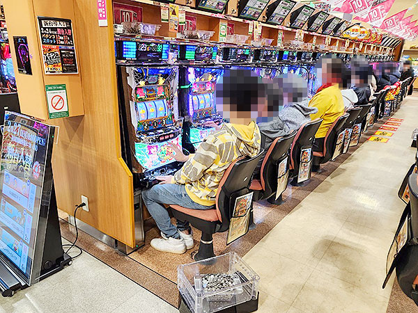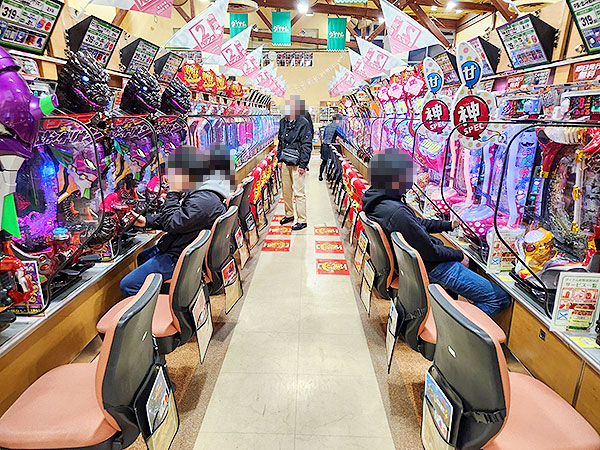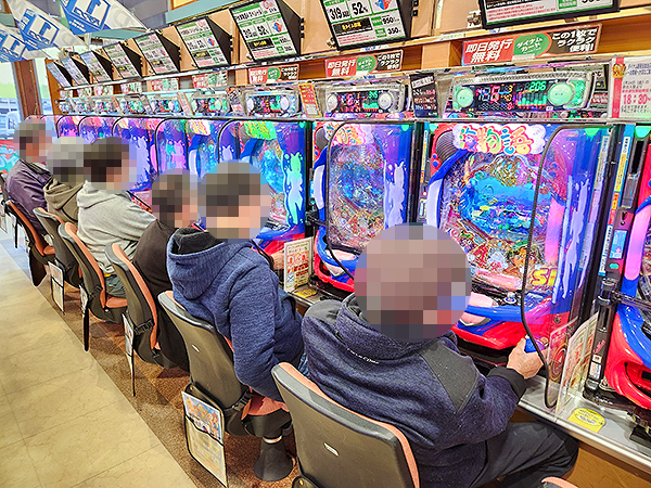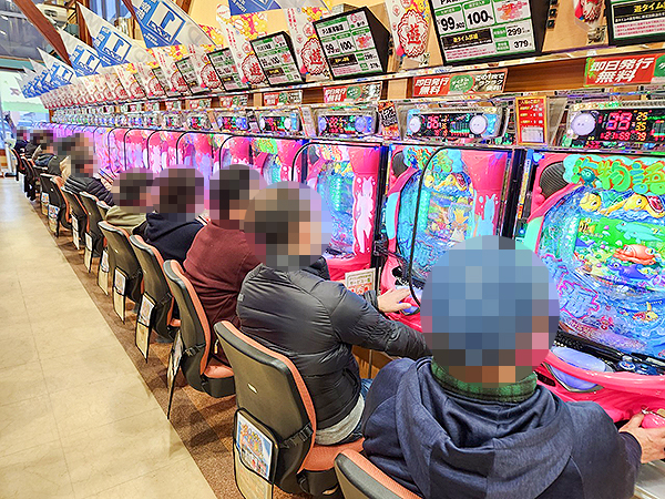 店内では貸し玉料金を問わず様々な機種で、心ゆくまで楽しむプレイヤーの姿が見られた。