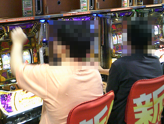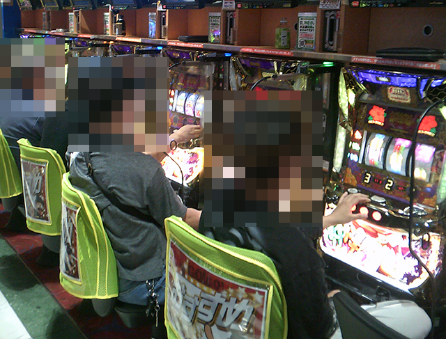 真紅の旗を抱えてパチスロコーナーをまわっていると、あちこちで活気のあるシーンがみられた。