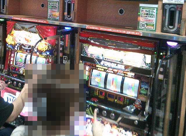 「ファンキージャグラー2」にて、楽しそうに遊技をおこなっているプレイヤーを確認。