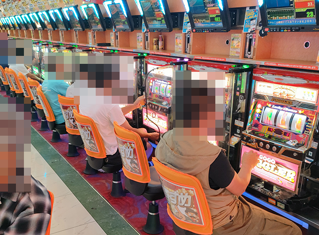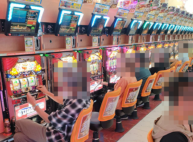 魅力的なシーンをカメラにおさめるべく、パチスロコーナーをまわっていこう。