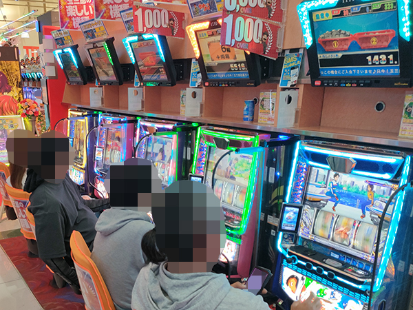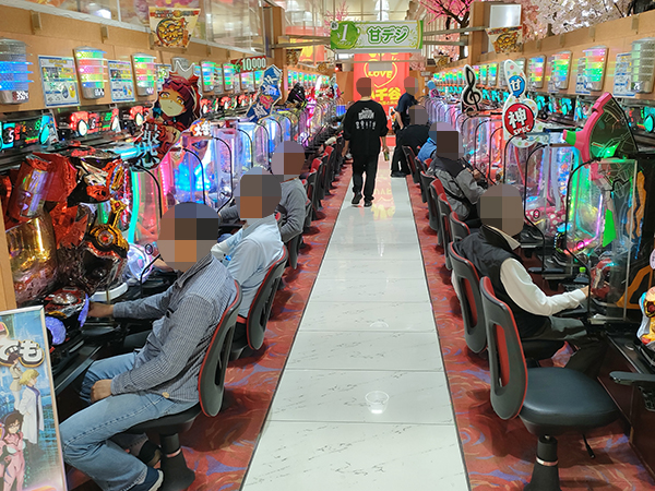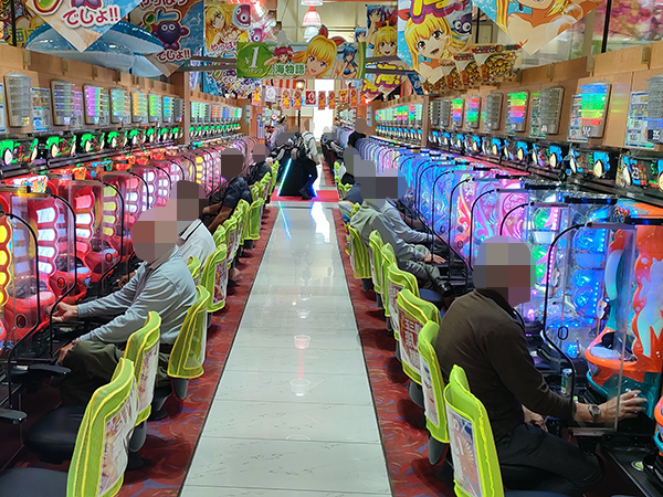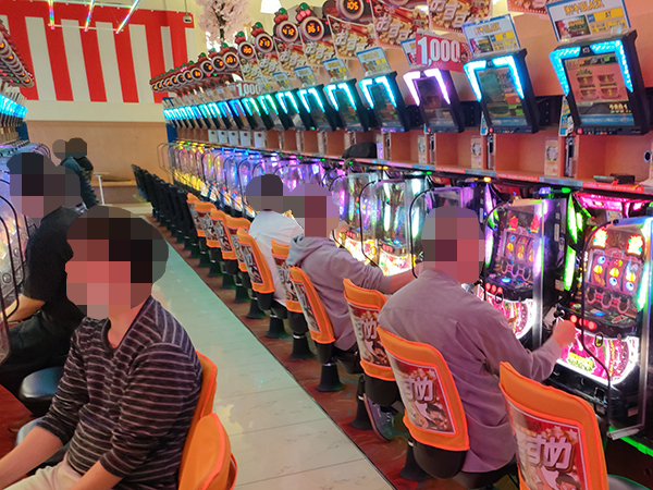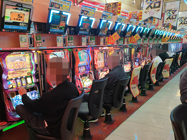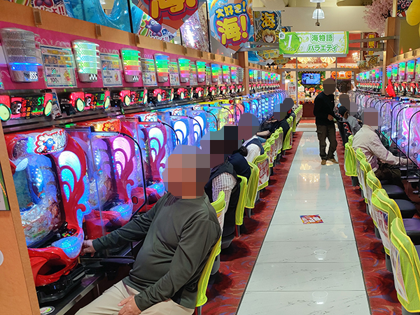取材時は既に多くのプレイヤーであふれており、パチンコ・パチスロを問わず楽しげな表情でいっぱいだった。