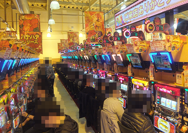 パチンコ・パチスロともに貸し玉料金が多く、プレイヤーたちは自分のスタイルにあわせて遊技を楽しんでいる様子であった。