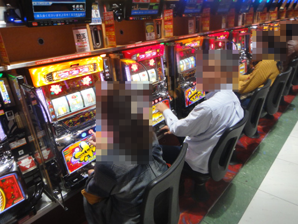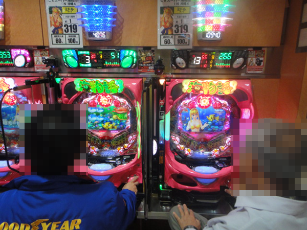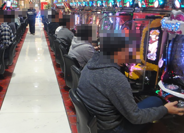 うれしそうなプレイヤーは0.5円パチンコにも多数。笑みを浮かべながら遊技をおこなっていた。