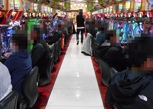 14時頃の20円パチスロのなかで、ひときわにぎわっていたのが「沖ドキ!-30」。ほぼ満席といった状況であり、稼働率と盛り上がりの両方において、ひときわ目立つ存在であったように思う。
