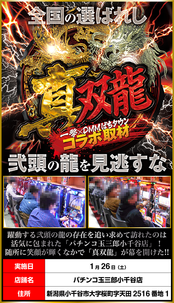 「パチンコ玉三郎小千谷店」にて「真双龍」をおこなった。