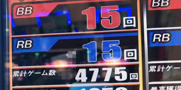 4800Gを超える頃にはBIG回数も増えて出玉の増加が急加速と、勢いよくゲーム数を稼いでいた序盤とは真逆の展開となっていた。