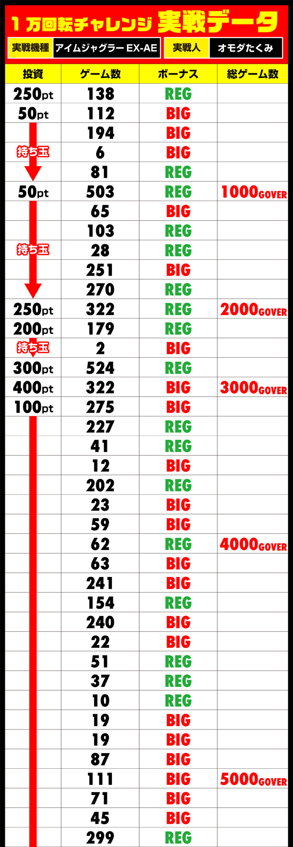 9時オープンという時間的な余裕もあり、チャレンジ成功の期待は大きい。1万回転達成はもちろんのこと、プラス差枚も目指してほしいところだ。