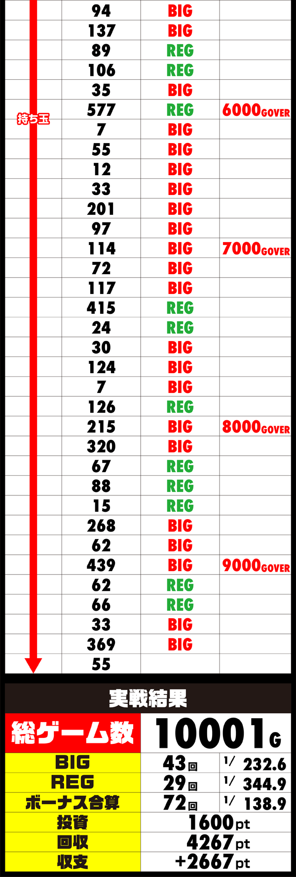BIGとREGをあわせて、最終的には72回のボーナスを獲得。