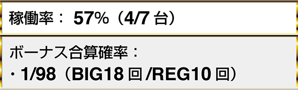 『アイムジャグラーEX-AE』では、ボーナス合算確率が1/100以上のデータを目にしている。