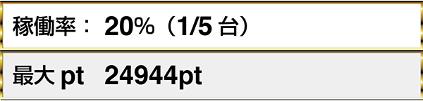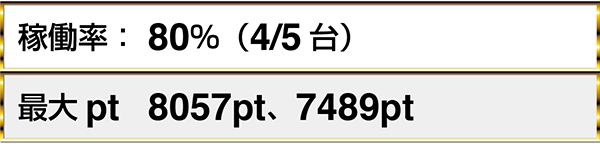・『CR真・花の慶次2〜漆黒の衝撃 2400』の稼働率が80%