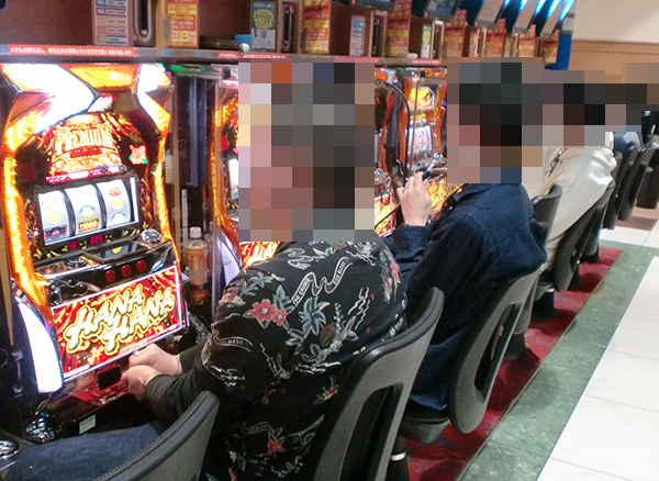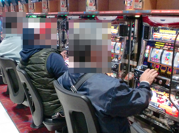 パチスロコーナーに目を向けると、さまざまな機種でプレイヤーがパフォーマンスを披露していた。