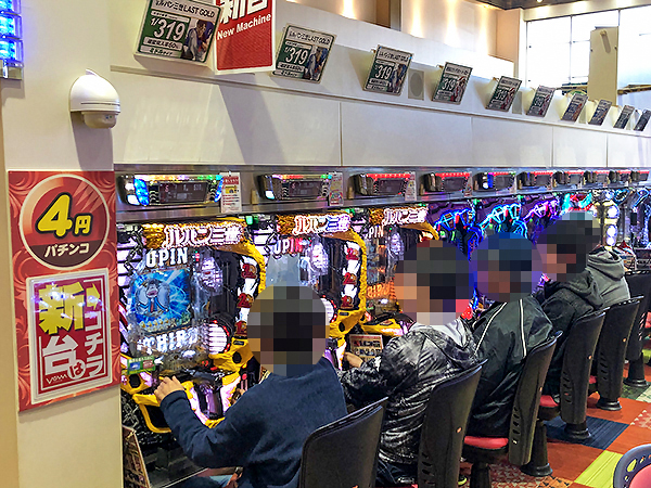 14時過ぎの4円パチンコを見渡すと「ぱちんこCR真・北斗無双」や「CRルパン三世〜LAST GOLD〜」、「新世紀エヴァンゲリオン 〜シト、新生〜」の盛り上がりが大きい。プレイヤーの活躍を各所で目にしている。