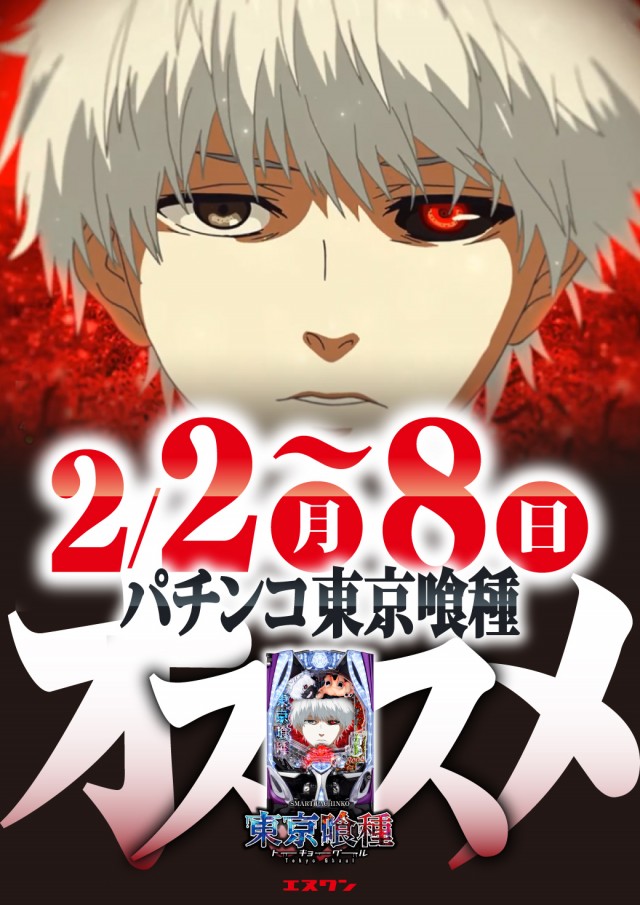 明日からe東京喰種オススメ、新台入替15:00開放予定!
