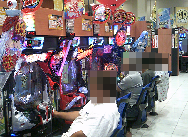 「P大海物語5スペシャル」にも遊技を満喫しているような姿があり、複数台に1箱以上の出玉があった。