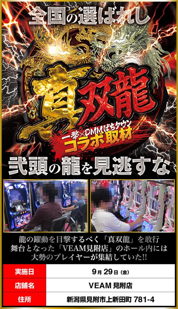 「VEAM見附店」で遊技を楽しむプレイヤーの明るい笑顔が印象的な「真双龍」であった。