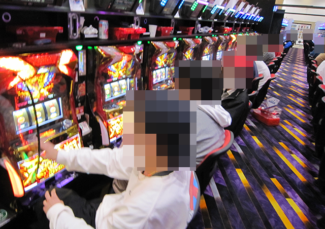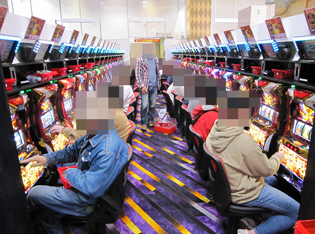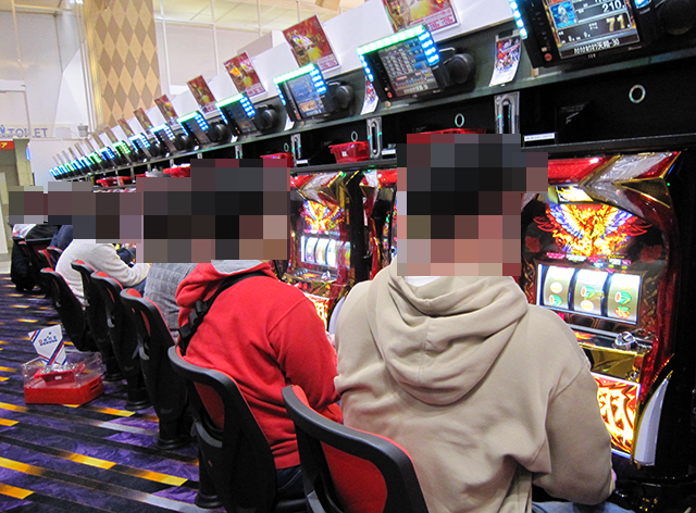 パチスロの状況をうかがうと、沖スロとジャグラーシリーズでたくさんのプレイヤーが遊技を楽しんでいた。