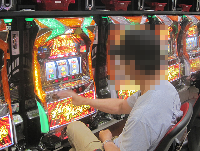 笑みを浮かべて遊技をおこなっている姿は、「プレミアムハナハナ-30」でも目撃。