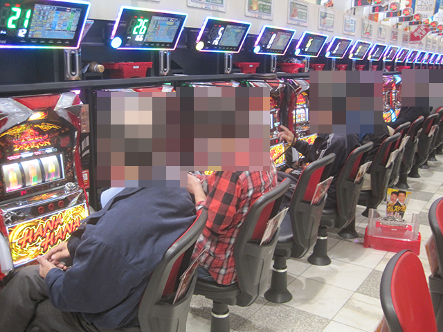 パチスロのシマをまわっていったなかで、とくに目をひかれた場所が「プレミアムハナハナ-30」であった。