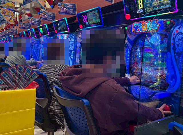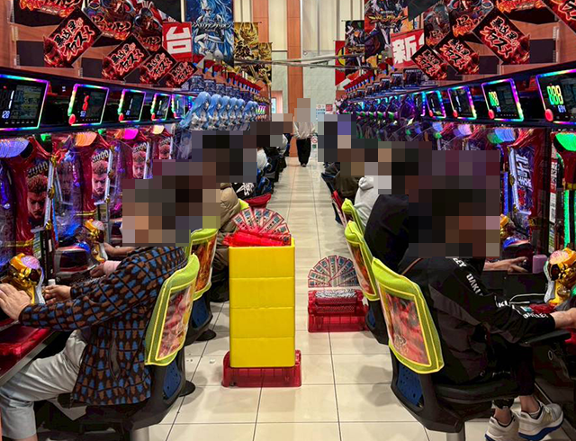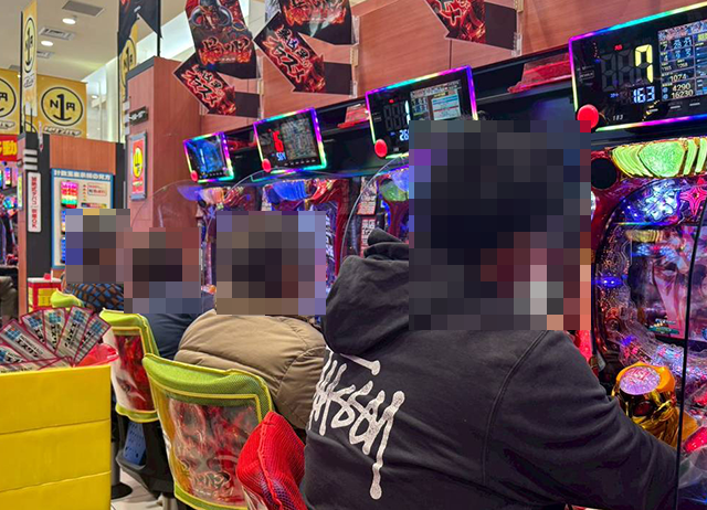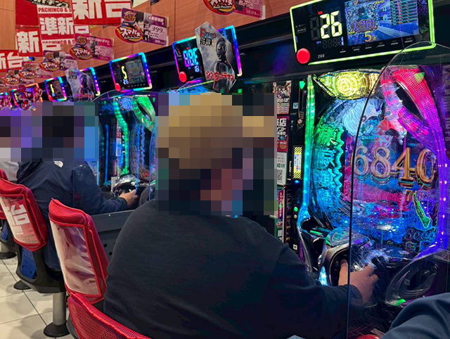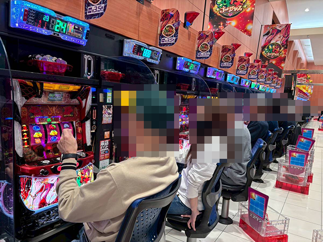 複数台に、3箱以上や2箱以上の持ち玉で遊技をおこなっているプレイヤーの姿があった。