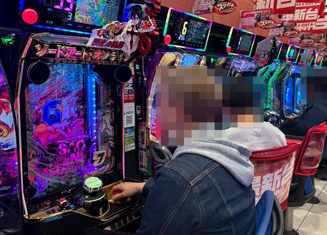 「e ソードアート・オンライン 閃光の軌跡」にも笑顔で遊技をおこなっている姿があり、機種のおもしろさを堪能していることが伝わってきた。