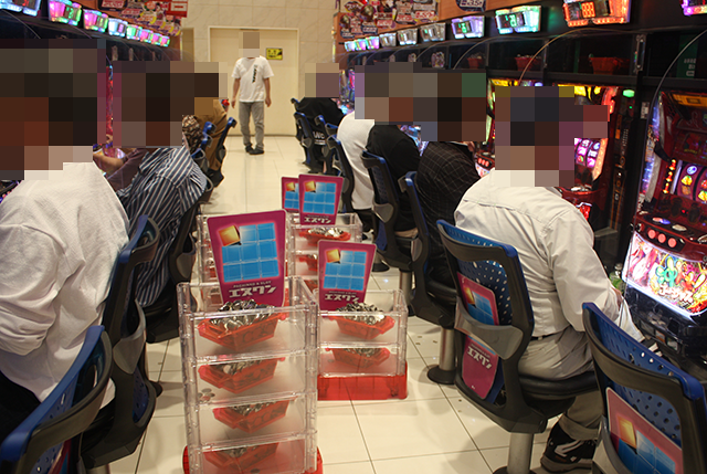 多くのプレイヤーが持ち玉で遊技をおこなっており、4箱以上となっている台も確認。