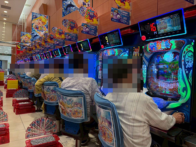 パチンコにおいては、海物語シリーズがにぎわっており、「P大海物語5スペシャル」に笑みを浮かべている姿が並んでいた。