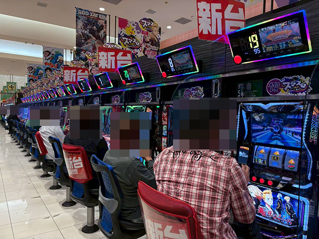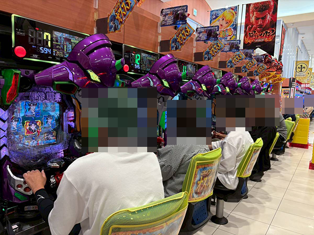「新世紀エヴァンゲリオン~未来への咆哮~」や「ぱちんこ シン・エヴァンゲリオン Type レイ」も楽しまれており、うれしそうに遊技をおこなう姿が並んでいた。