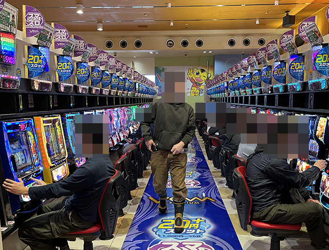 「ハッピージャグラーVⅢ」などのジャグラーシリーズも支持され、明るい表情で遊技をおこなっている姿があった。