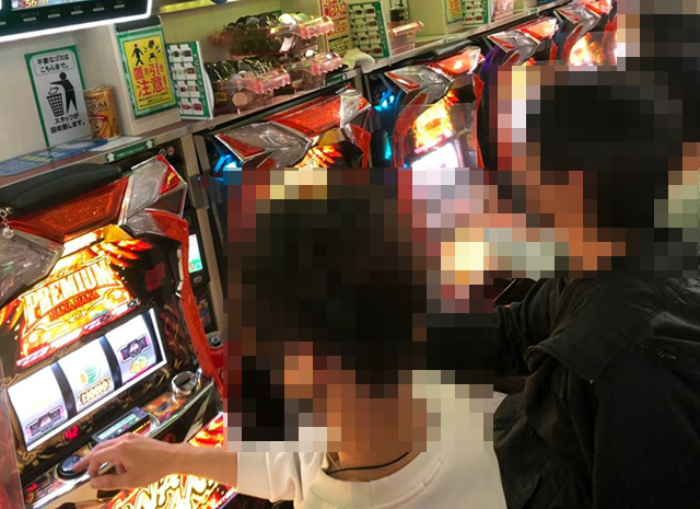 設置台数がもっとも多い「プレミアムハナハナ-30」をみると、9名が楽しそうに遊技をおこなっており、大きなにぎわいが感じられる状況。