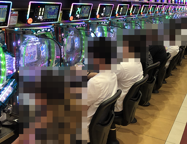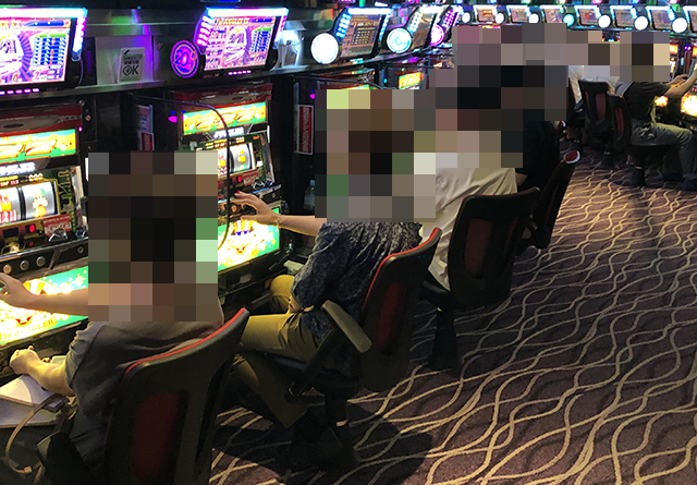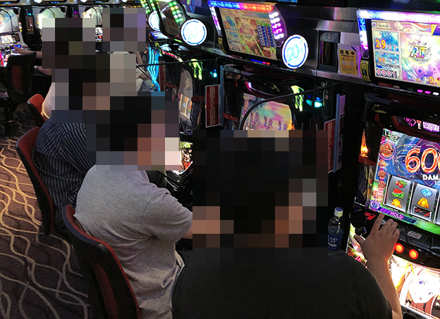 「アイムジャグラーEX」で、プラス台が3台並んだ場所を発見!