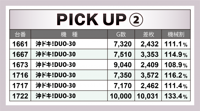 万枚突破の『沖ドキDUO』など30パイ機が絶好調!