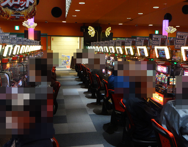 「P大工の源さん 超韋駄天」をはじめ、さまざまな機種が楽しまれていた「パチンコ玉三郎糸魚川店」。