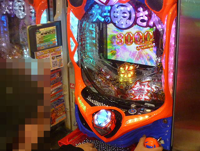 うれしそうにハンドルを握っている姿が目立っていた「P大工の源さん 超韋駄天」! 『瞬速』で活躍をしているシーンが印象深く、遊技を満喫していることがうかがえた。